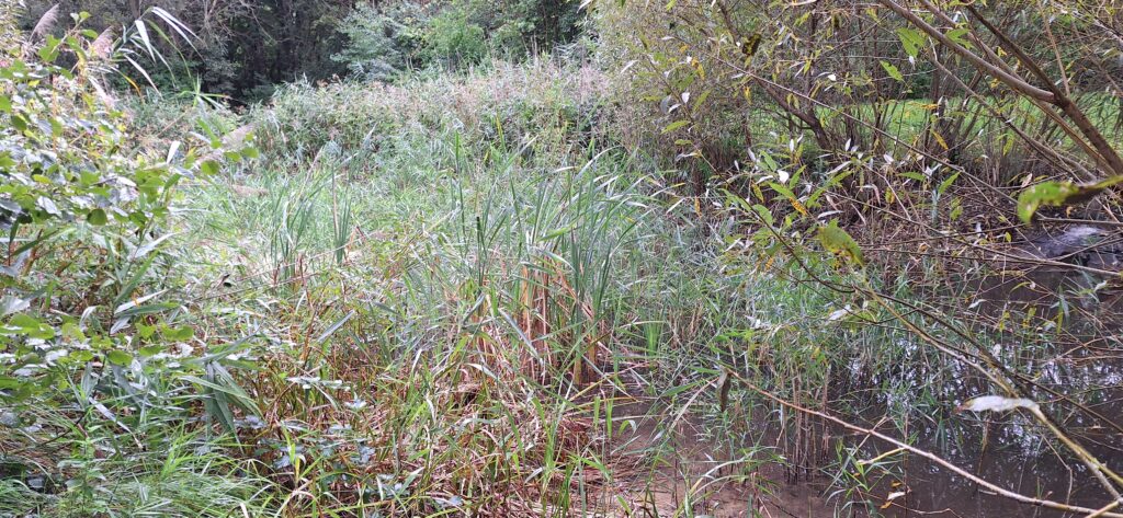 Anlage eines Teiches mit Schilfrand; Setzen einer Hecke mit heimischen Baum- und Straucharten mit seitlichen buchtartigen Freiräumen (Ökonischen), streifenförmiger Anbau verschiedener Wildackermischungen;